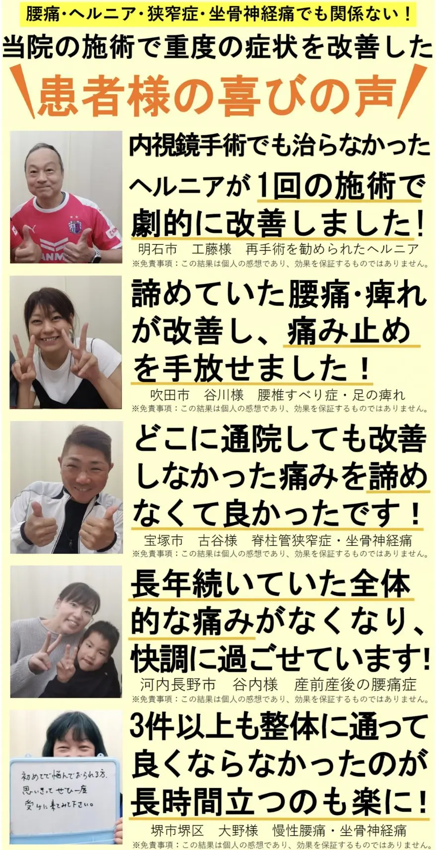 - 手術をしても痛みや神経痛が残って諦めている脊柱管狭窄症